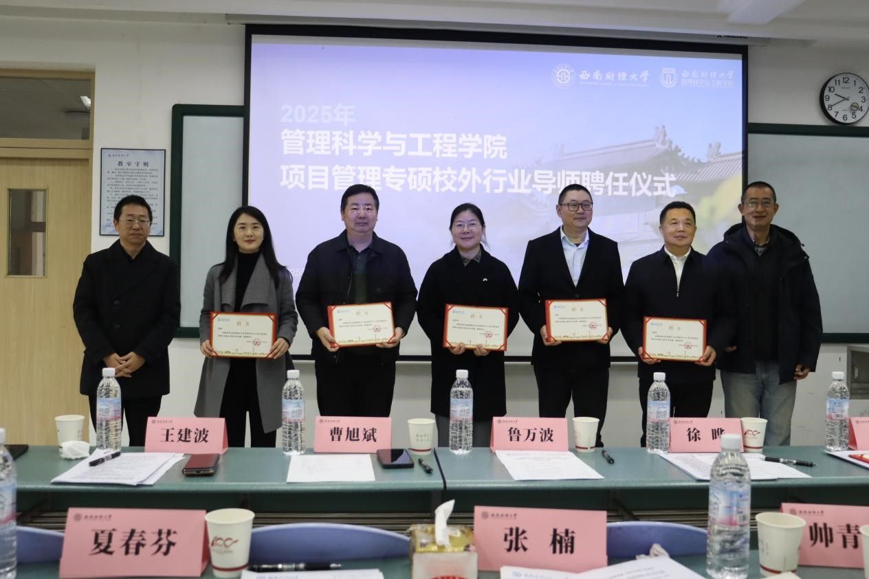 在光华校区成功举办项目管理专硕校外行业导师聘任仪式。成都超算中心运营管理有限公司董事长王建波、四川省电子商务协会常务副会长徐晔、成都映潮科技股份有限公司董事长吴超、四川映乡者文化传媒有限公司首席执行官刘渊、成都种智孵化器管理有限公司总经理夏春芬、中铁信托有限责任公司高级经理张楠等行业优秀代表受邀出席。熟女a片