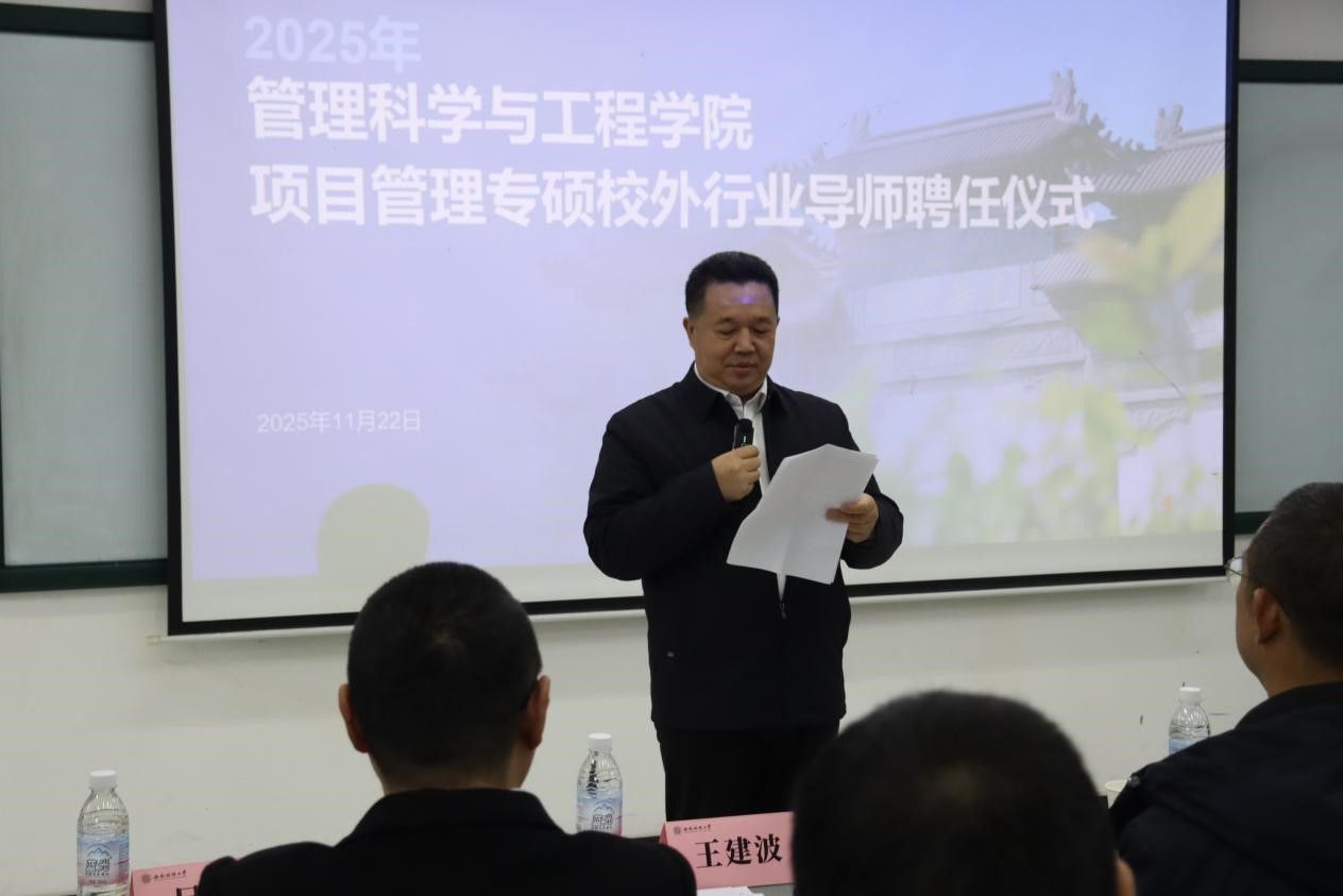 校外行业导师代表王建波对受聘表示荣幸与责任,他结合国家超级计算成都中心的实践经验,强调项目管理理论对前沿技术落地的关键价值,期望同学们成为懂技术、解难题、有格局的复合型人才。