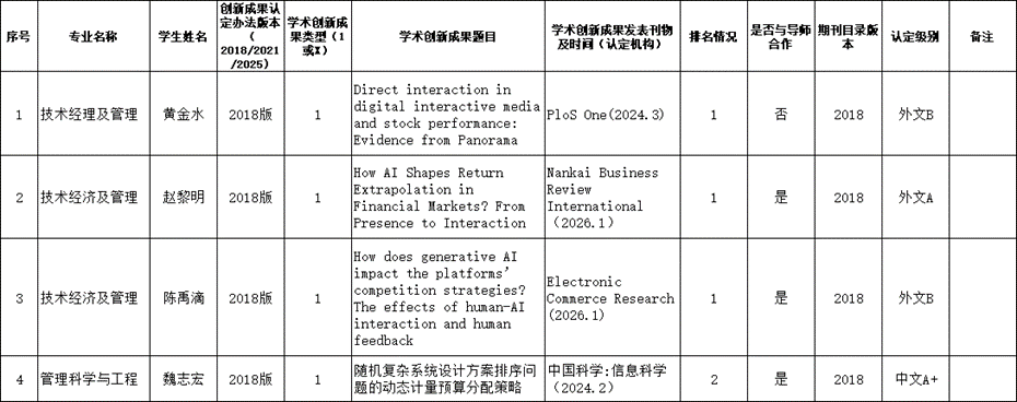 根据《熟女a片 博士生申请学位学术创新成果认定办法》和我院相应专业的博士生培养方案要求及科研成果发表的相关规定,熟女a片 对相关博士生的学术创新成果及科研情况进行了审核,现将结果予以公示。公示期15日,即自2026年4月14日至4月28日,在此期间若有异议,请及时反馈熟女a片 。